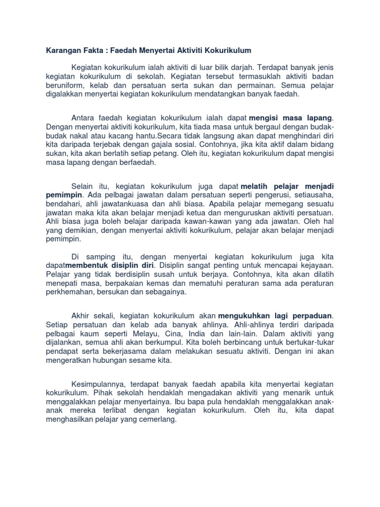 Karangan Fakta Faedah Menyertai Aktiviti Kokurikulum