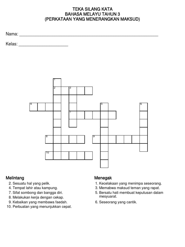 Contoh Teka Silang Kata Bahasa Melayu Berserta Jawapan Yang Sangat Terbaik Untuk Ibubapa Muat Turun Skoloh